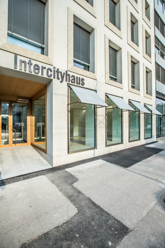The building on Aeschenplatz in Basel was built in 1860. At the time it only had two levels and served as a brewery. In the course of time more levels were added and the building’s purpose changed repeatedly. The restructuring of the facade emphasizes the window apertures of cast stone that incorporates the neighbouring building’s haptics and in so doing, anchors itself in the urban context. The ground floor is designated for public use and benefits from a specifically designed courtyard that is appealling for clients as well as for employees. The upper floors are layed out as contemporary office spaces that accommodate the various services of the Intercity Group.